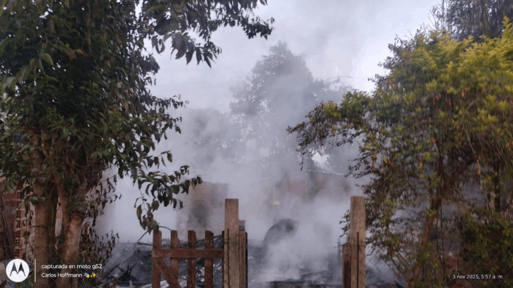 Una vivienda resultó totalmente destruida por el fuego durante la madrugada de este lunes en la ciudad de Eldorado. El hecho ocurrió alrededor de las 5:20 horas, cuando la propietaria del inmueble se despertó al percibir humo dentro de su casa y constató que las llamas se habían iniciado en el interior.