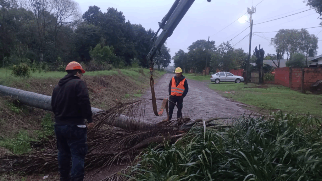 Las tareas abarcan la limpieza de calles, el retiro de árboles y ramas caídas, y la desobstrucción de desagües colapsados. Durante las últimas horas, los operarios concentraron esfuerzos en arterias clave como Doglio, Durian e Ybirá Pitá, donde la tormenta provocó serios inconvenientes.