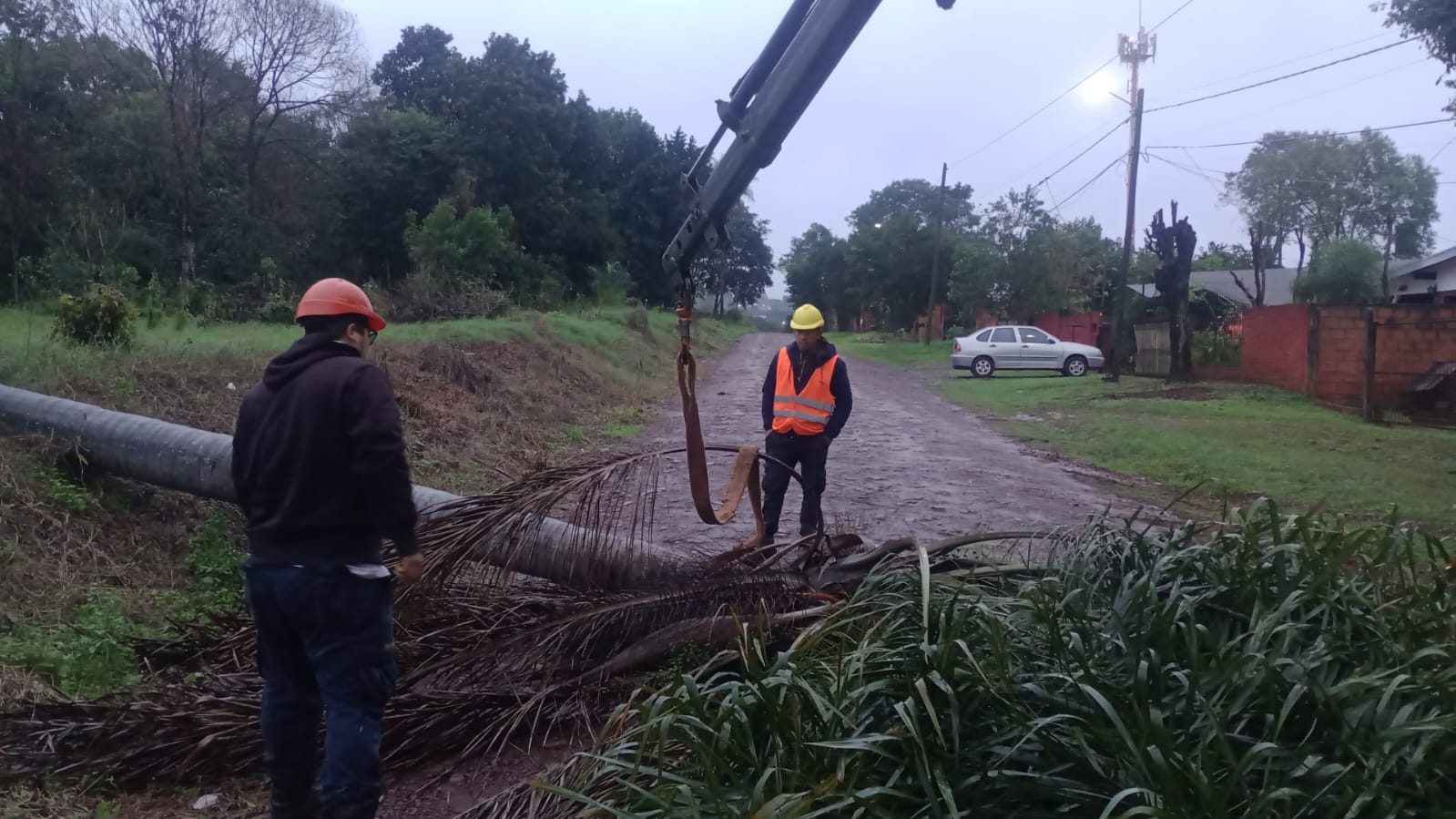 El municipio de Eldorado desplegó cuadrillas desde la noche del martes para limpiar calles, retirar árboles caídos y asistir a vecinos tras el fuerte temporal.