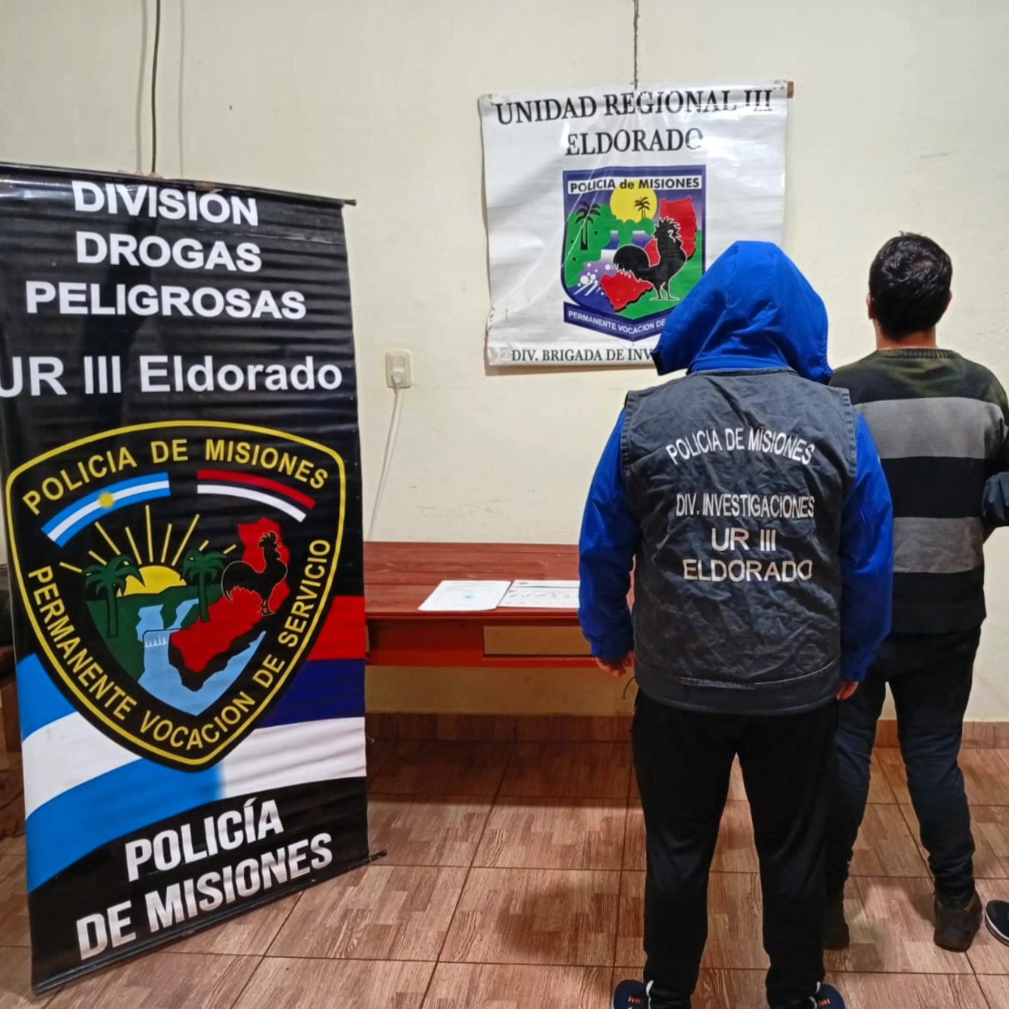 Este martes alrededor de las 17:30 horas, efectivos de la División Drogas Peligrosas y la Brigada de Investigaciones arrestaron al presunto dealer que llevaba envoltorios de cocaína en el kilómetro 4 de Eldorado, como resultado de un patrullaje preventivo realizado en el marco del Operativo Saturación Barrial, coordinado por la Unidad Regional III.