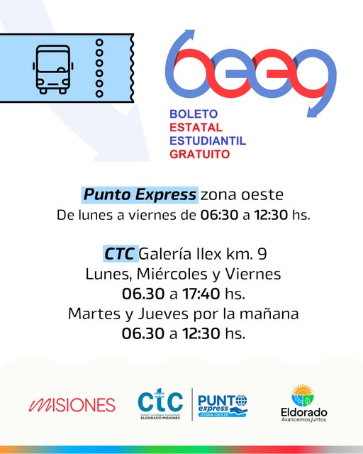El Boleto Estatal Estudiantil Gratuito Misionero (BEEG) continúa brindando apoyo a estudiantes de la provincia de Misiones, ofreciendo puntos de asesoramiento en Eldorado para facilitar el acceso a este beneficio.