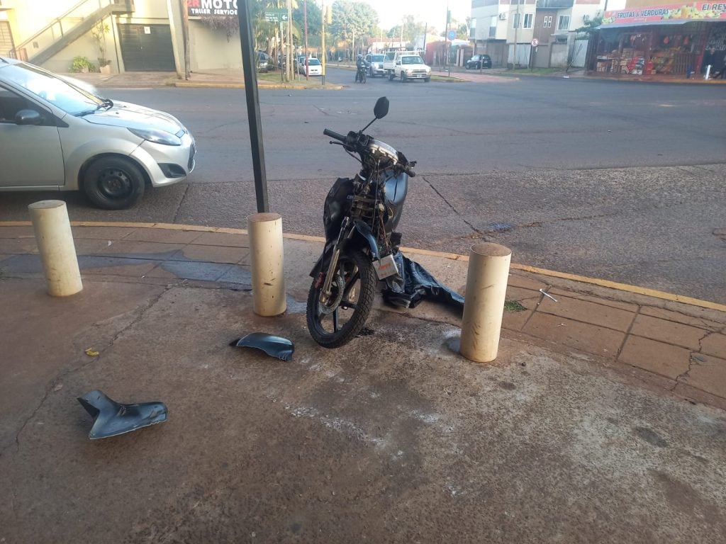 Un accidente de tránsito ocurrido esta mañana en Posadas dejó como saldo a una mujer lesionada y a un motociclista prófugo. El siniestro se produjo alrededor de las 8 en la intersección de las avenidas San Martín y Santa Cruz, y fue protagonizado por dos motocicletas, una de ellas una Zanella ZB 110 cc.