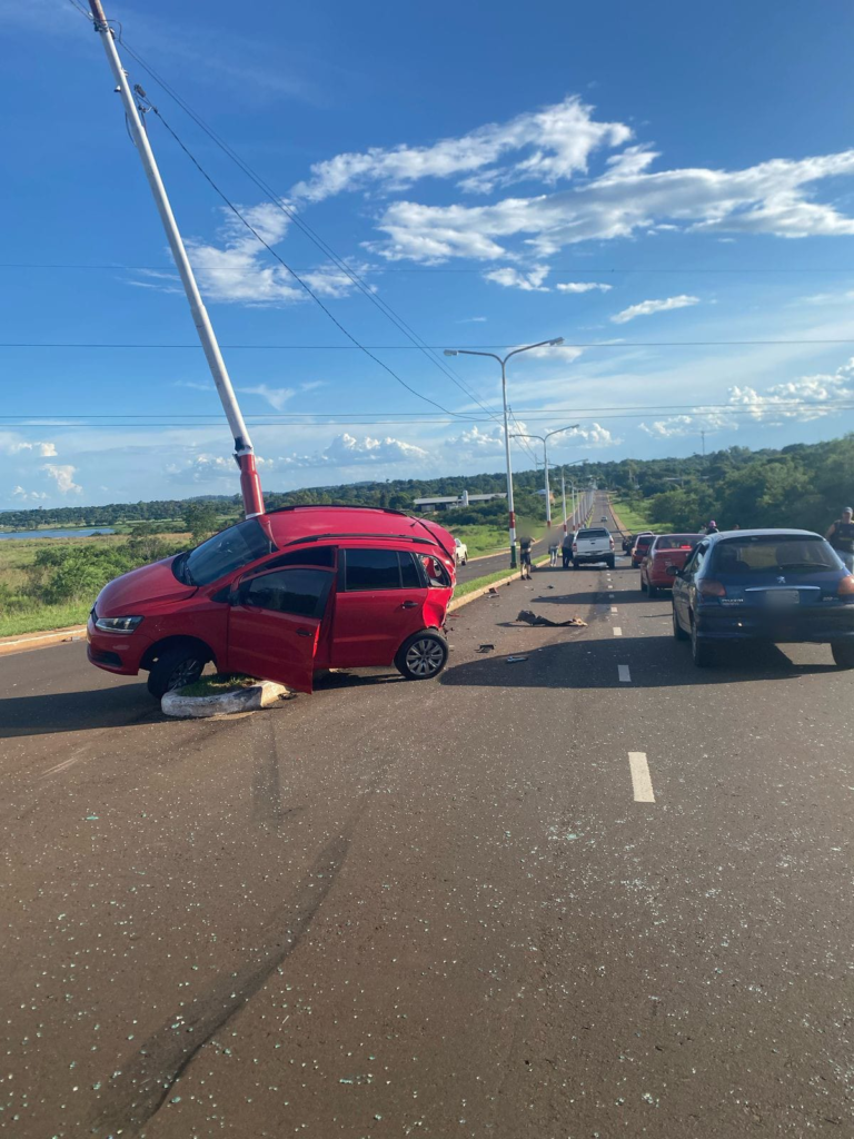 Un fuerte accidente de tránsito ocurrió este viernes por la tarde en la Avenida Corrientes, en el acceso a Garupá. A unos 500 metros de la rotonda del Indio, una camioneta Toyota Hilux blanca impactó contra un Volkswagen Suran rojo, provocando que este último chocara contra un poste de alumbrado público.