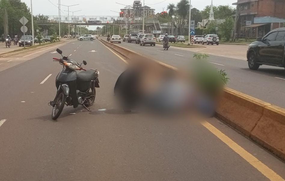 Hoy alrededor de las 12:00 horas, una motocicleta Corven 110 c.c despistó en la Ruta Nacional 12 y calle Almeida. El rodado, que circulaba en sentido Posadas–Garupá, era conducido por un hombre de 42 años acompañado de una mujer de 46.