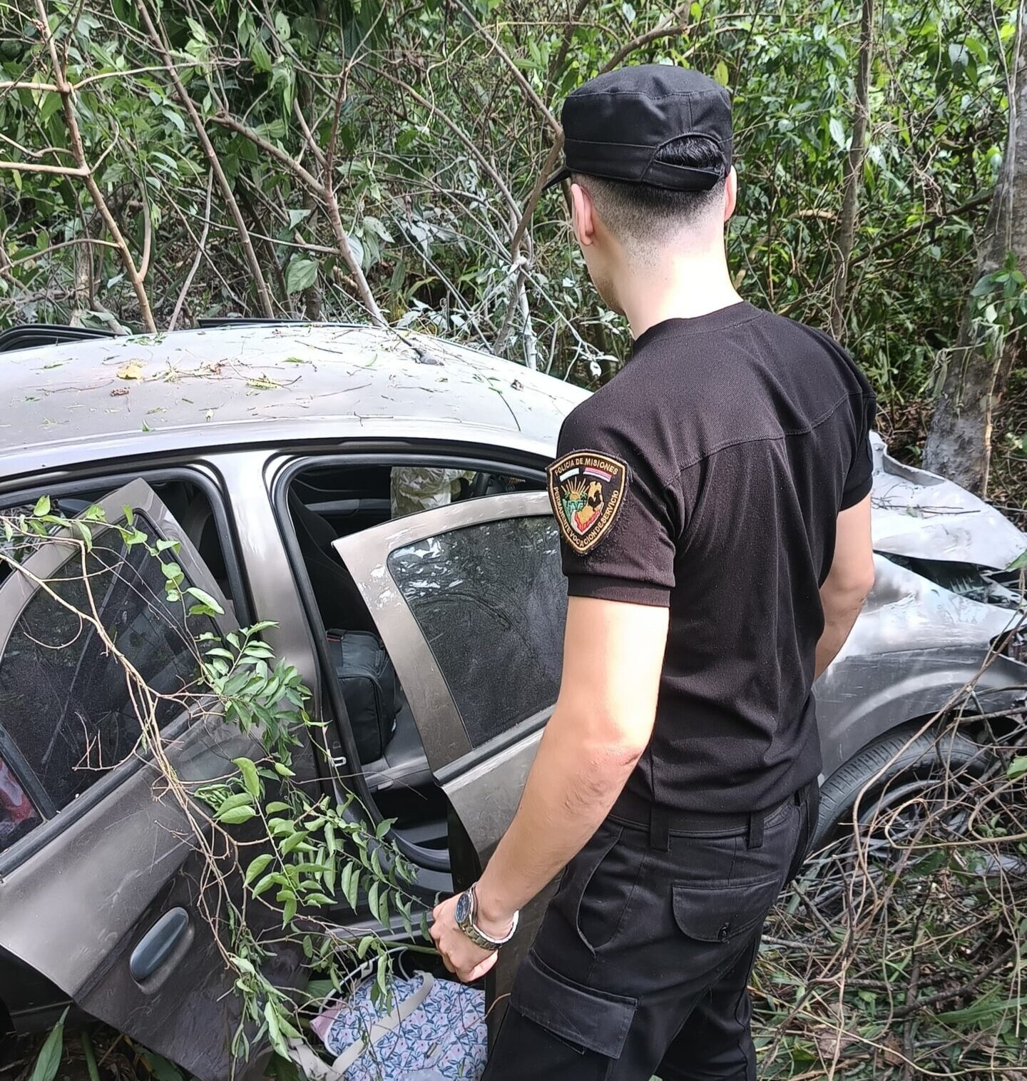 Efectivos de la Comisaría de El Alcázar acudieron al lugar y constataron que un Chevrolet Prisma se había salido de la calzada y terminó en una zona de malezas.