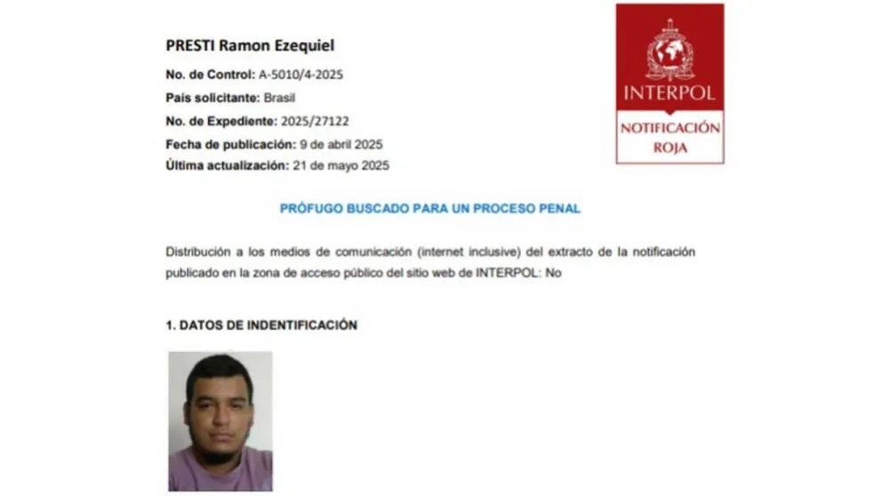 La solicitud llegó justo cuando Presti estaba próximo a ser excarcelado por la causa de robo, por lo que la Justicia Federal dispuso que continúe detenido hasta que se complete el trámite de extradición.
