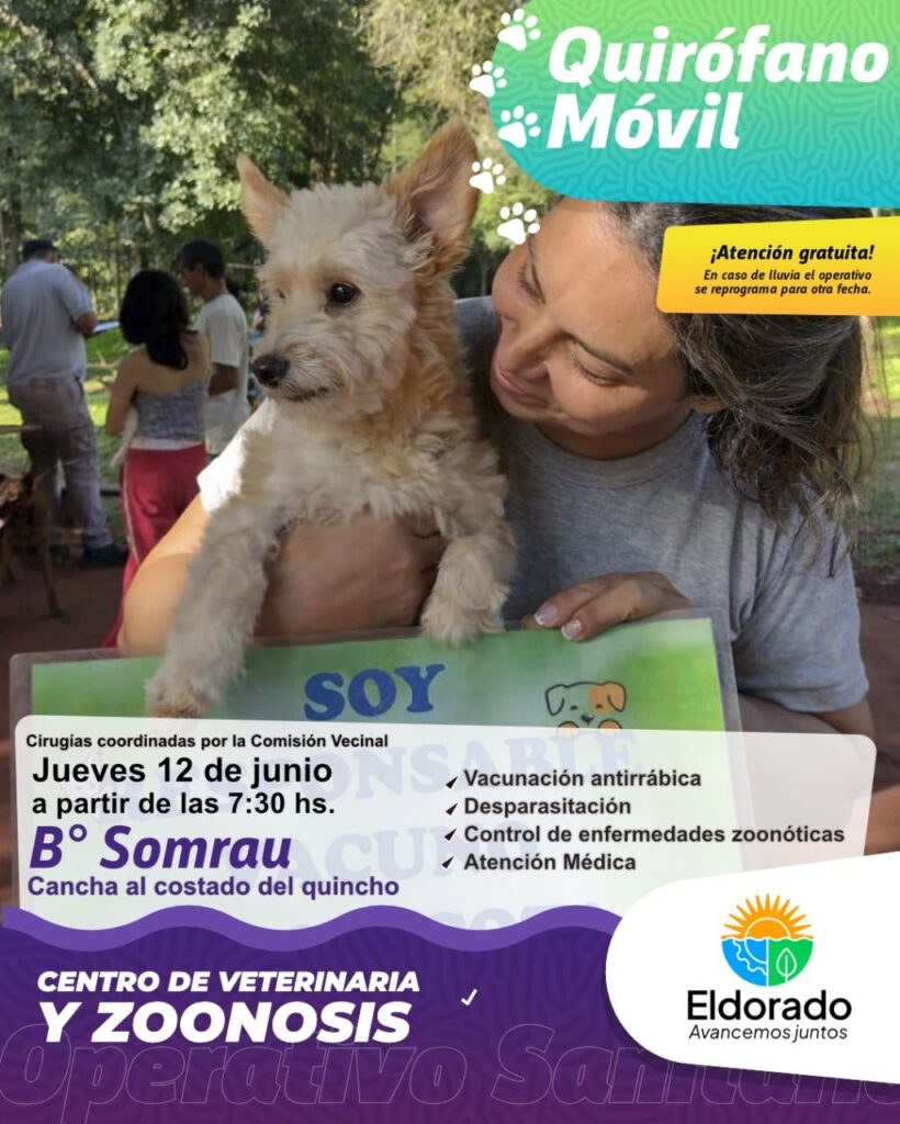 El próximo jueves 12 de junio, el Centro de Veterinaria y Zoonosis de Eldorado llevará adelante un nuevo operativo del Quirófano Veterinario Móvil, con una jornada integral de esterilización, vacunación y control sanitario de mascotas.