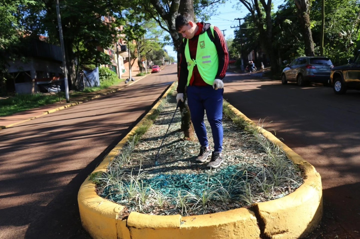 Eldorado avanza con un nuevo operativo de embellecimiento urbano en distintos sectores de la ciudad. Este martes, las tareas se concentraron en el Boulevard de la Avenida Córdoba, donde el municipio renovó los espacios verdes con materiales sustentables y diseños que realzan la identidad local.