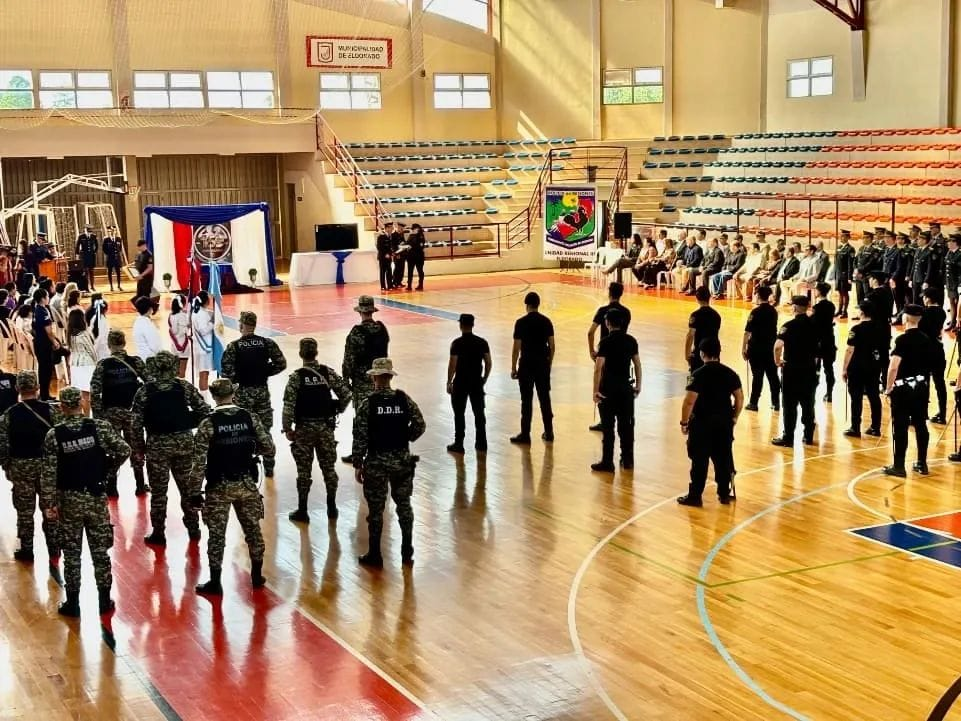 La ciudad de Eldorado celebró este jueves 8 de mayo el 169° aniversario de la Policía de Misiones con un acto central en el Polideportivo Universitario y Municipal del kilómetro 3. Autoridades, fuerzas de seguridad, escolares y vecinos participaron de la ceremonia, que incluyó reconocimientos a efectivos en actividad y retirados. El comisario mayor Eduardo Rubén García, jefe de la Unidad Regional III, encabezó el evento y reflexionó sobre el presente de la fuerza.