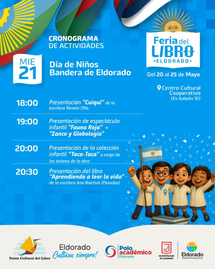 Del 20 al 25 de mayo, la ciudad de Eldorado se convierte en epicentro de la literatura y la cultura con la realización de una nueva edición de la Feria del Libro, que tiene lugar en las instalaciones del Centro Cultural Cooperativo, ubicado en el ex galpón 10 de la Cooperativa Agrícola.