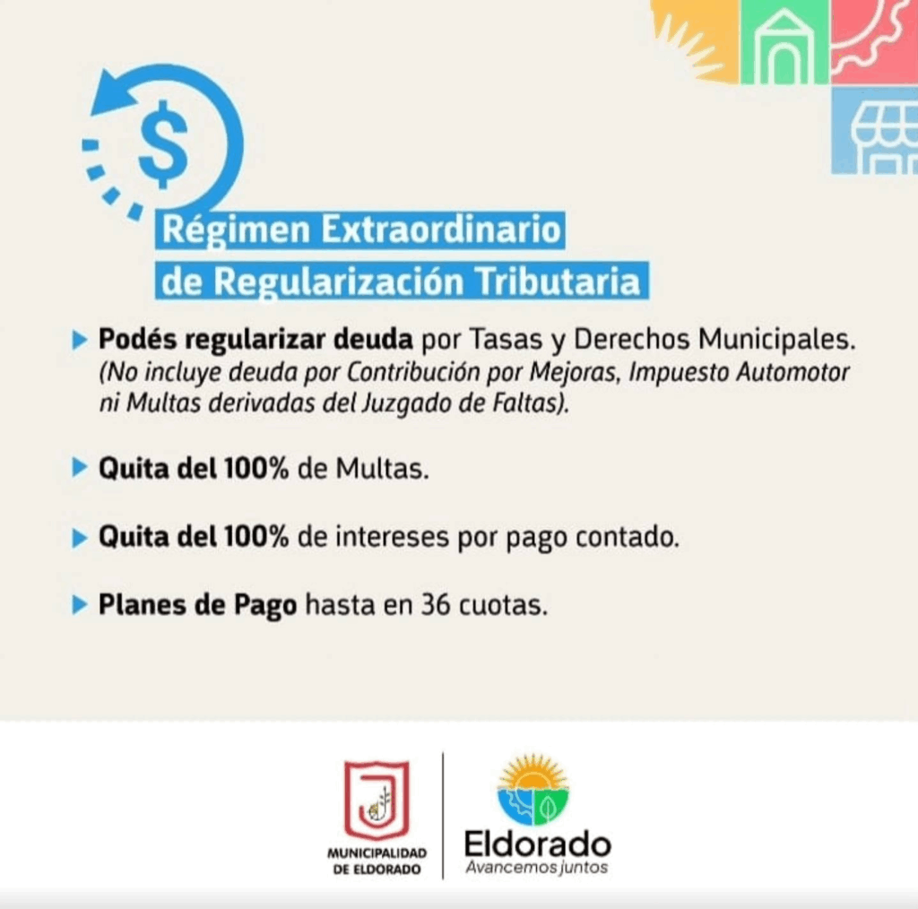 Para recibir más información o iniciar el proceso de regularización, los interesados pueden comunicarse al (03751) 422373 interno 227, enviar un mensaje al (3751) 307305 o escribir a ventanillaunicaeldorado@gmail.com. La propuesta forma parte de una estrategia municipal para dinamizar la economía local y generar empleo.