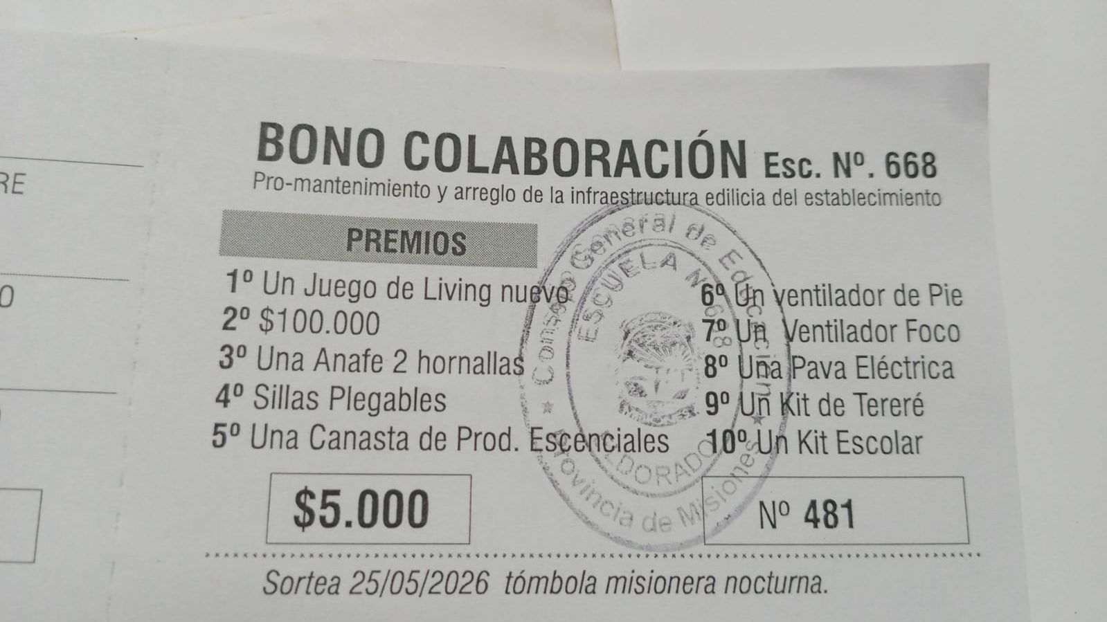 “Este bono surgió este año. El año pasado, al terminar el ciclo lectivo, tuvimos también un ingreso de los amigos de lo ajeno a nuestra institución”, relató.