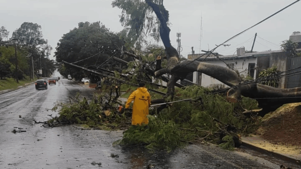 Una intensa tormenta con ráfagas de viento afectó este domingo al mediodía a Posadas y Garupá. Árboles caídos, cortes de energía y techos volados marcaron la jornada. Rige alerta naranja en la provincia y continúan los trabajos de asistencia en barrios afectados por el fenómeno climático.