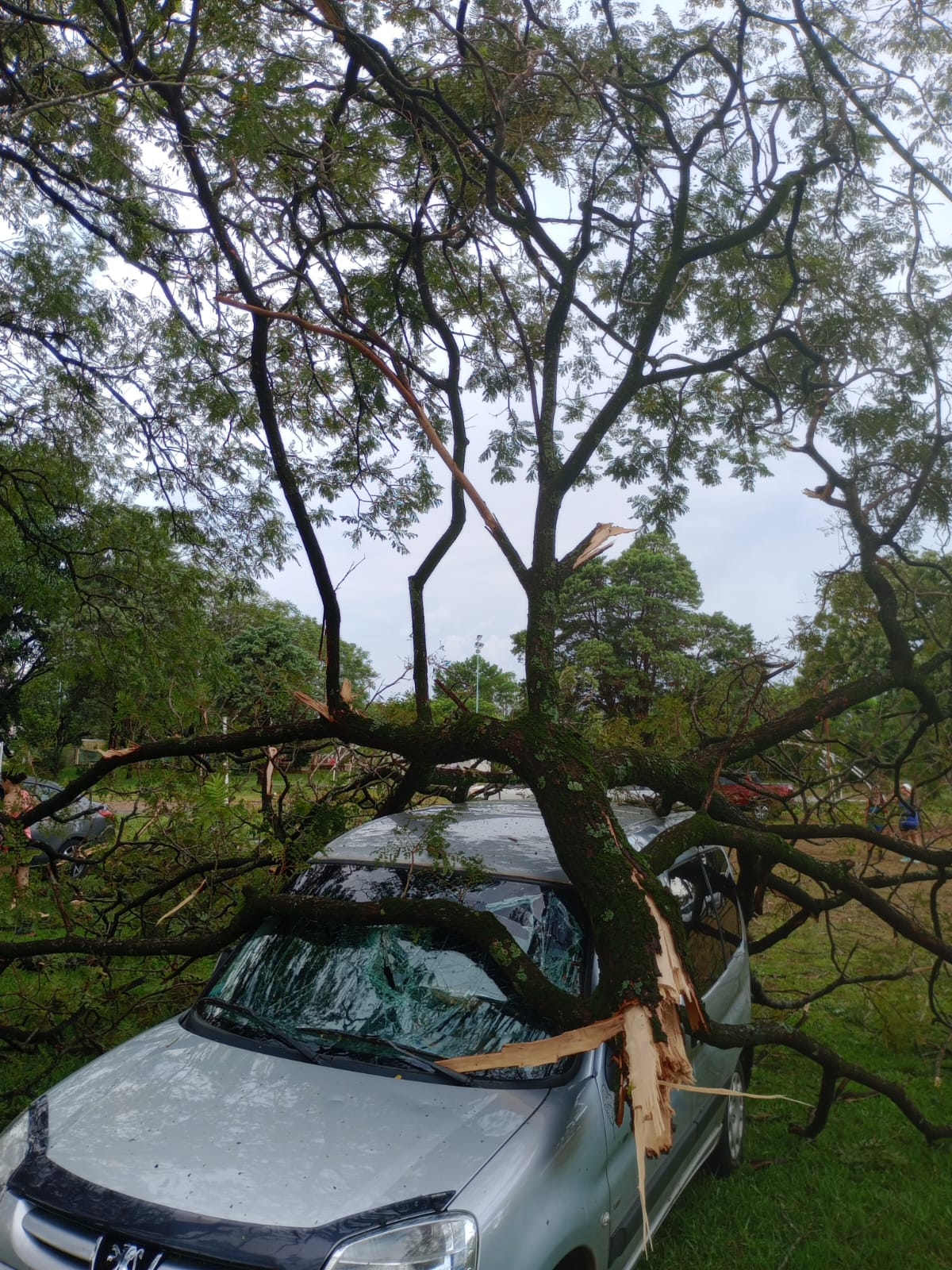 Un fuerte temporal de viento y lluvia azotó este martes por la tarde la zona del Club Centro de Cazadores, en barrio San Lucas, barrio Latinoamérica y el Autódromo de Posadas. En pocos minutos, las ráfagas derribaron árboles, volaron techos y dejaron calles anegadas.