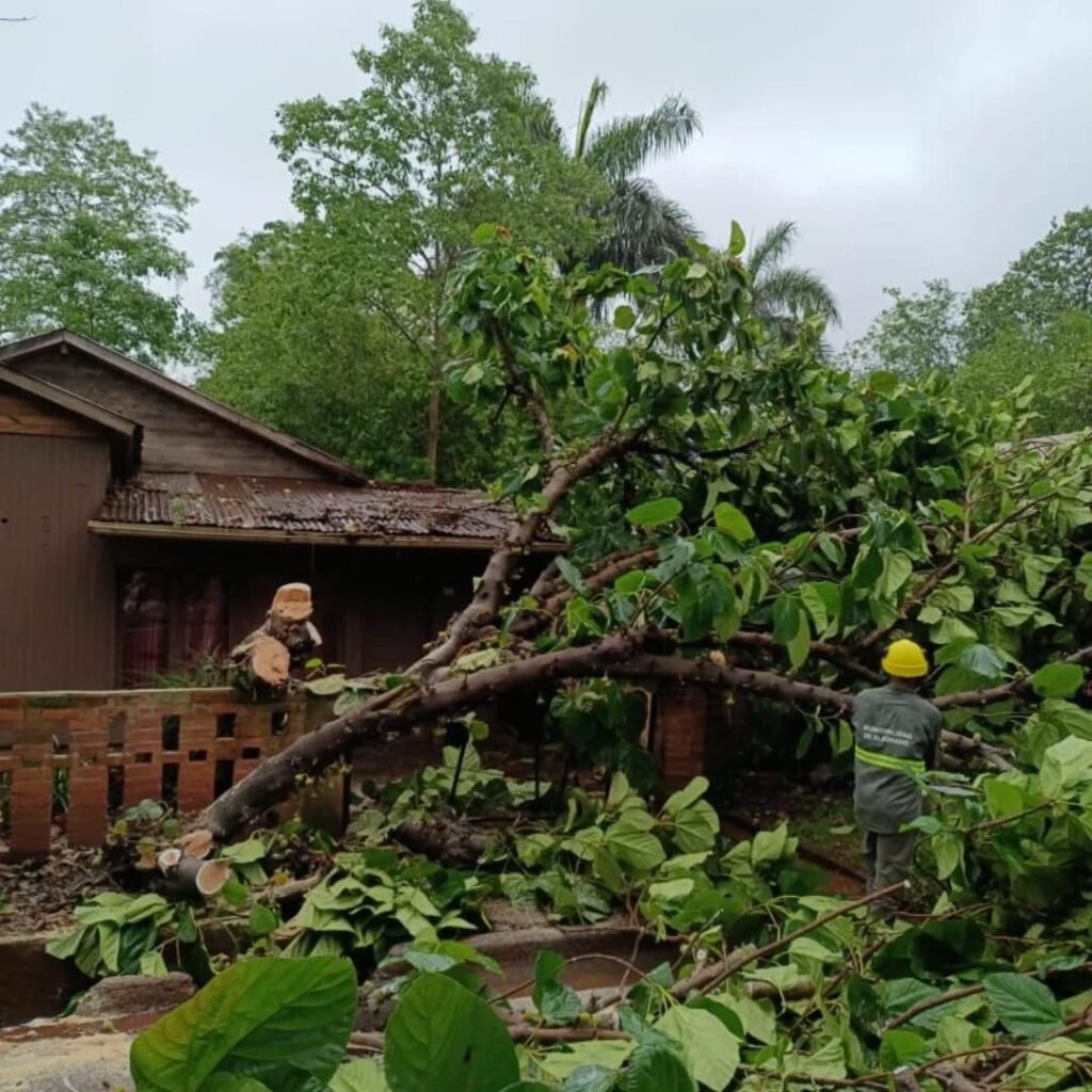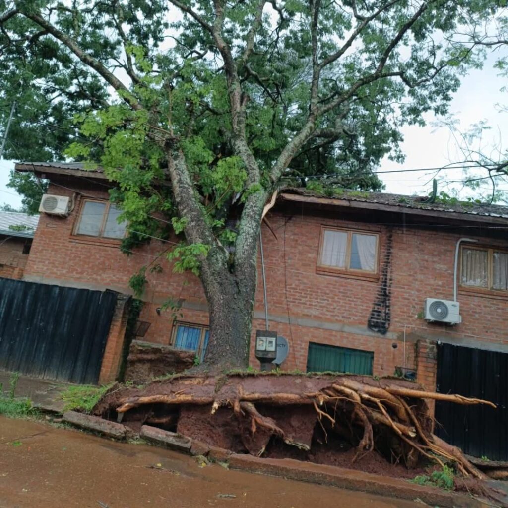Las intensas lluvias de este domingo por la mañana provocaron la caída de árboles en distintos sectores del kilómetro 10 de Eldorado. Uno de ellos cayó sobre una vivienda en la calle Arenhardt, sin dejar heridos. El municipio desplegó personal de Obras Públicas para despejar las calles afectadas.