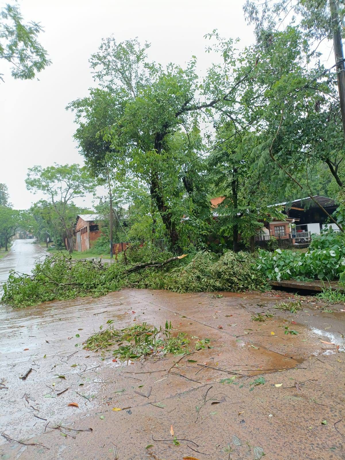 Las intensas lluvias de este domingo por la mañana provocaron la caída de árboles en distintos sectores del kilómetro 10 de Eldorado. Uno de ellos cayó sobre una vivienda en la calle Arenhardt, sin dejar heridos. El municipio desplegó personal de Obras Públicas para despejar las calles afectadas.