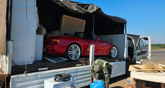 Mientras realizaban el control documentológico del vehículo, los gendarmes notaron algo llamativo entre los bultos. Debajo de los colchones y electrodomésticos, se asomaba la silueta de un auto. En presencia de testigos, procedieron a descargar el camión y confirmaron la sospecha: se trataba de un BMW Z3 año 1998, con matrícula de la República del Paraguay, que no contaba con la admisión temporal correspondiente para justificar su ingreso legal al país.
