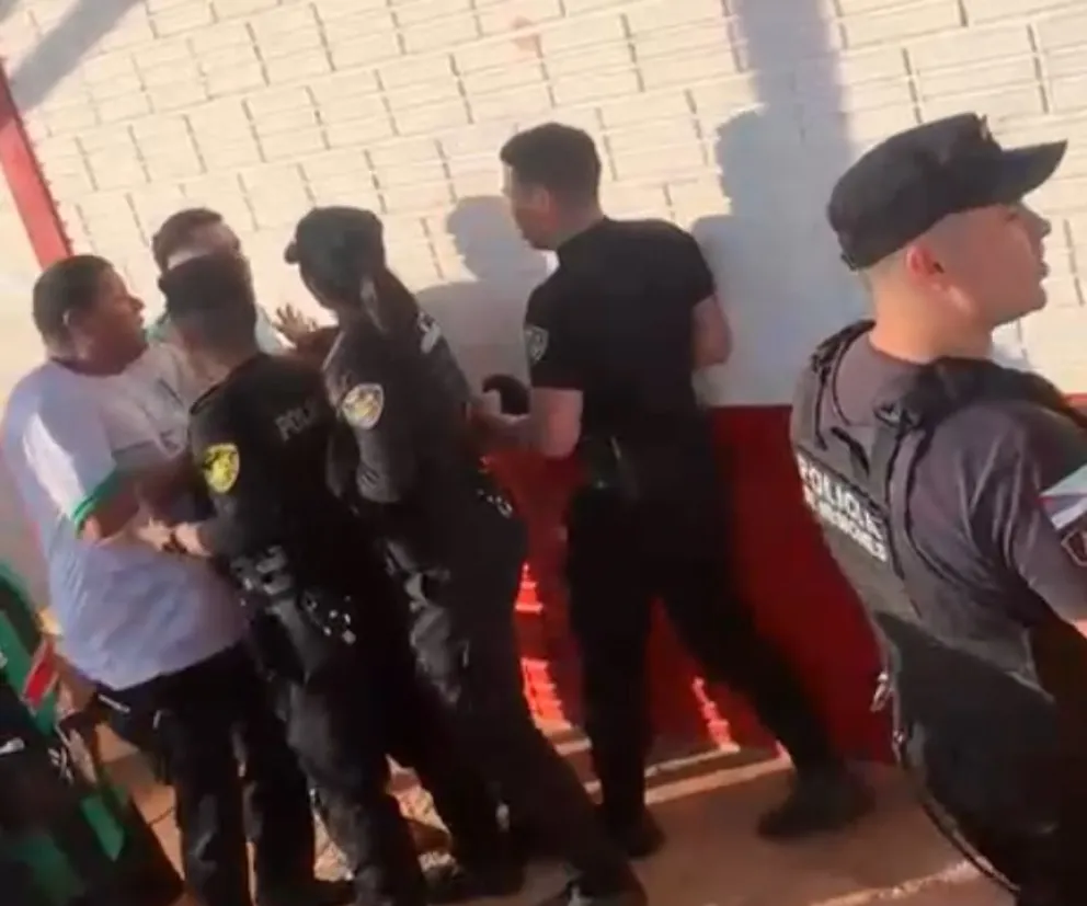 Los compañeros del equipo intervinieron y la situación escaló rápidamente. Videos que circularon en redes muestran forcejeos, mientras que testigos aseguran que el policía desenfundó su arma reglamentaria de forma amenazante hacia jugadores y público visitante.