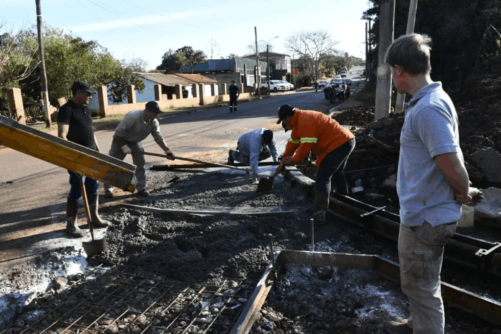 La obra de pavimentación sobre calle Polonia alcanzó este jueves su tramo final con trabajos en la intersección con calle Paraguay. El equipo de Obras Públicas intervino en el badén y el sumidero, completando los últimos detalles del proyecto que transformará la conectividad en ese sector de Eldorado.