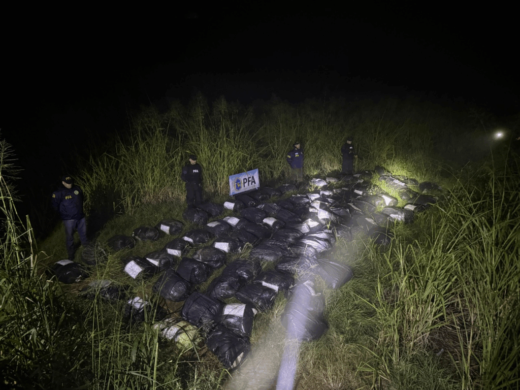 Durante la inspección, los uniformados encontraron 94 bolsas de nylon negras ocultas entre la maleza. El fuerte olor que emanaban permitió identificar rápidamente que se trataba de marihuana. El pesaje posterior confirmó que el cargamento superaba ampliamente la tonelada, lo que constituye uno de los mayores secuestros de droga en lo que va del año en la región.