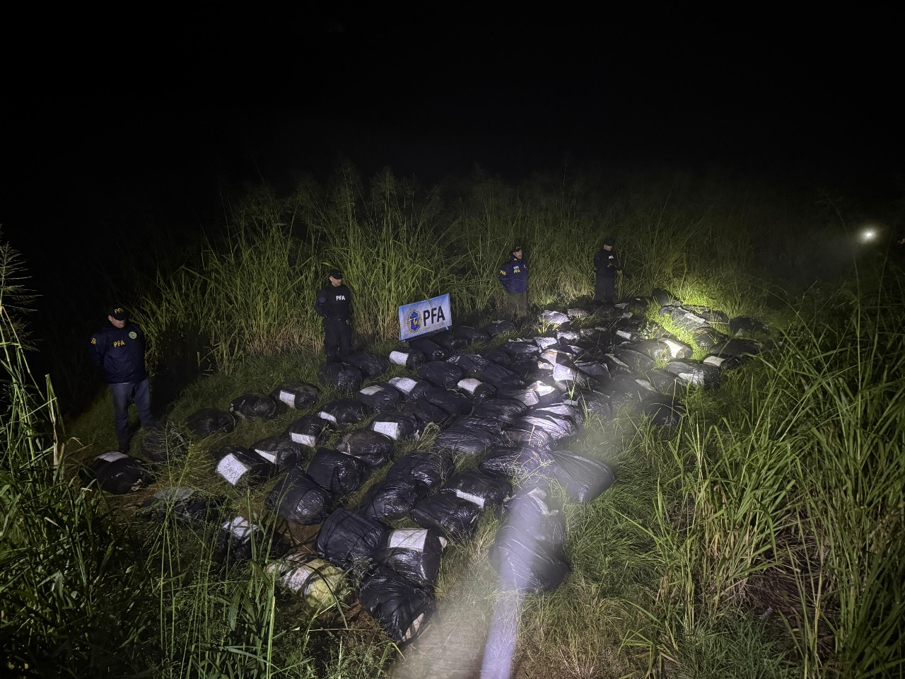 La Policía Federal secuestró más de 1.000 kilos de marihuana ocultos en una zona rural de Eldorado. El operativo se realizó tras detectar movimientos sospechosos en el barrio Pinares. La droga estaba repartida en 94 bolsas y su valor supera los 3.000 millones de pesos.