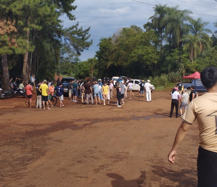 Una manifestación se desarrolla esta tarde en el ingreso a las minas de Wanda, en la zona de Cuatro Bocas – Puerto Wanda, en rechazo a la Tasa Eco Turística implementada por el municipio.