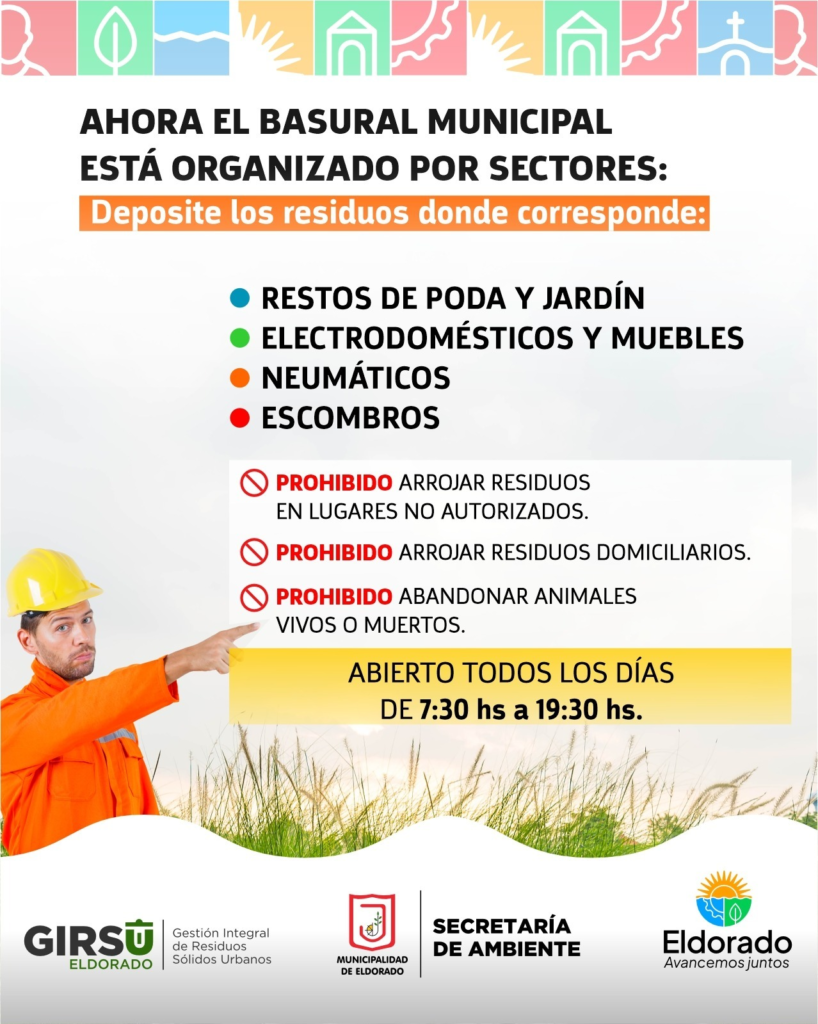 La Secretaría de Ambiente y GIRSU Eldorado impulsan esta iniciativa con el objetivo de mejorar el tratamiento de los desechos y reducir la contaminación ambiental. Además, se recuerda a la comunidad que está prohibido arrojar residuos en lugares no autorizados, así como depositar basura domiciliaria o abandonar animales en el predio.