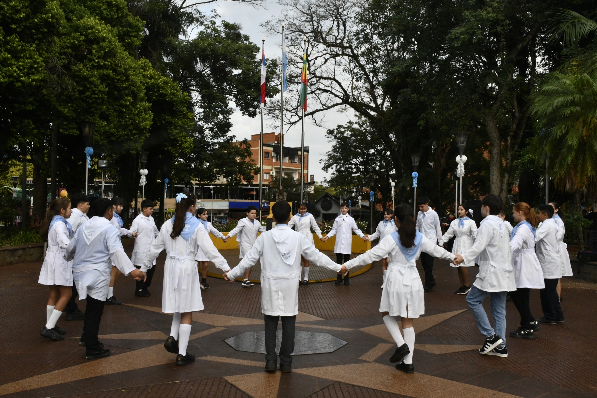 Los alumnos de la Escuela N.º 468 “Juana Manso” protagonizaron un emotivo número artístico en honor a la bandera, destacando su significado como símbolo de unidad, pertenencia y cultura eldoradense.