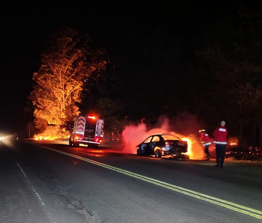 Un vehículo se incendió en la madrugada de este sábado mientras circulaba por la Ruta Provincial N°5, a la altura del kilómetro 45, en jurisdicción de Los Helechos. Afortunadamente, no se registraron personas heridas, aunque las llamas consumieron por completo el automóvil y se propagaron a una zona de pastizales y cultivos linderos a la calzada.
