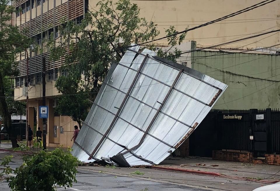 Las intensas ráfagas de viento provocaron la caída de árboles, anegamientos en calles y la voladura de techos en viviendas y estructuras livianas en la capital misionera.