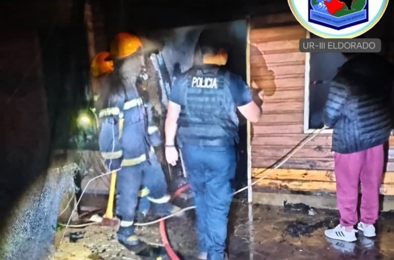 Un incendio afectó una vivienda ubicada en la intersección de las calles Néstor Kirchner y Alarcón, en la ciudad de Eldorado, durante la madrugada de este domingo. El hecho se registró cerca de las 2:00, cuando efectivos de la Comisaría 4ª y personal de Bomberos Voluntarios acudieron al lugar tras recibir un llamado de emergencia.