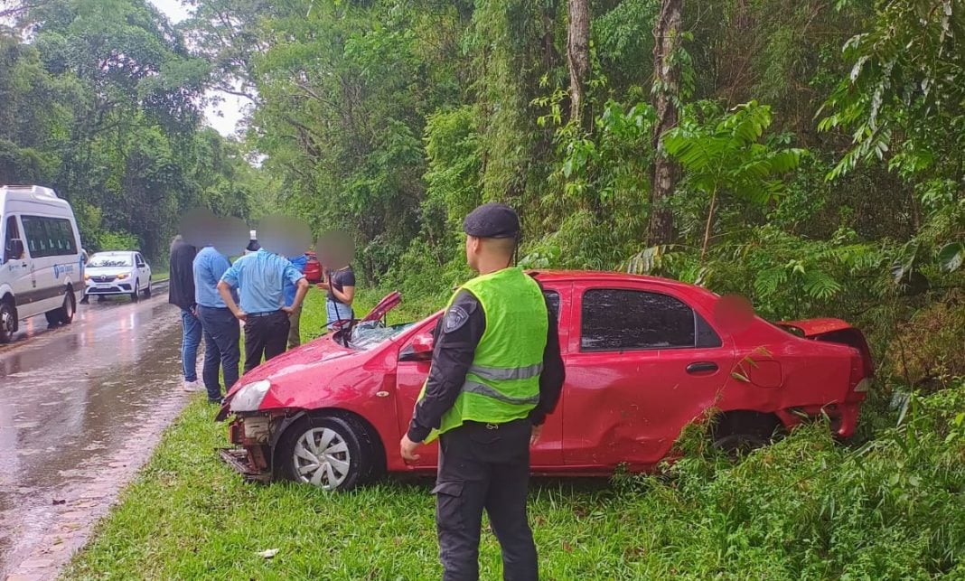 Efectivos de la División Comando Radioeléctrico de la Unidad Regional V intervinieron en un siniestro vial ocurrido sobre la Ruta Provincial 101, en dirección al Aeropuerto Internacional de Puerto Iguazú, durante la mañana de este lunes.