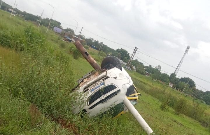 Un taxi protagonizó un siniestro vial este lunes en el Acceso Sur de la ciudad de Posadas, a la altura del barrio Ripiera, donde por motivos que aún se investigan el vehículo terminó volcado sobre la calzada.